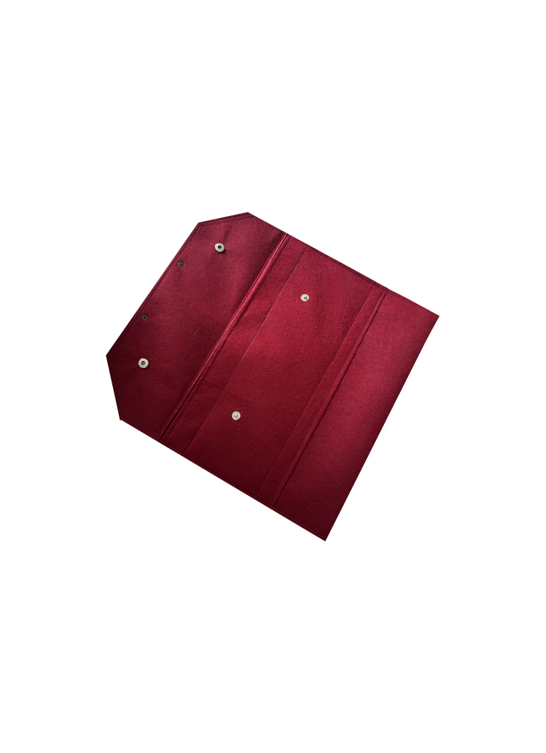 Ürün tamamen keçeden üretilmiş olup deri etiket ve metal aksesuarlar kullanılmıştır.